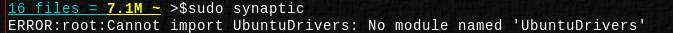 ::If I open synaptic from terminal (rxvt) then settings>repositories this error appears. ERROR:root:Cannot import UbuntuDrivers: No module named ‘UbuntuDrivers’