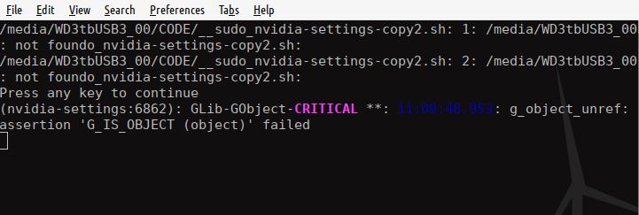 Here you can see an example where the file name is ‘__sudo_nvidia-settings-copy2.sh’ but it says ‘not foundo_nvidia-settings-copy2.sh’: