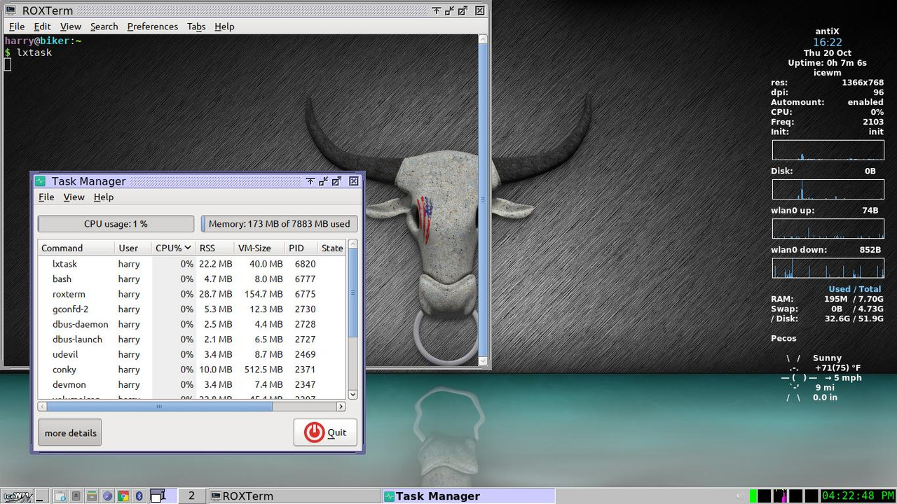 prog "Task Manager" ~/Icons/task_manager.png /usr/bin/lxtaskHit logout on menu and pic restart icewm. Walla. My new icon shows in taskbar. I click it. Task manager shows up.